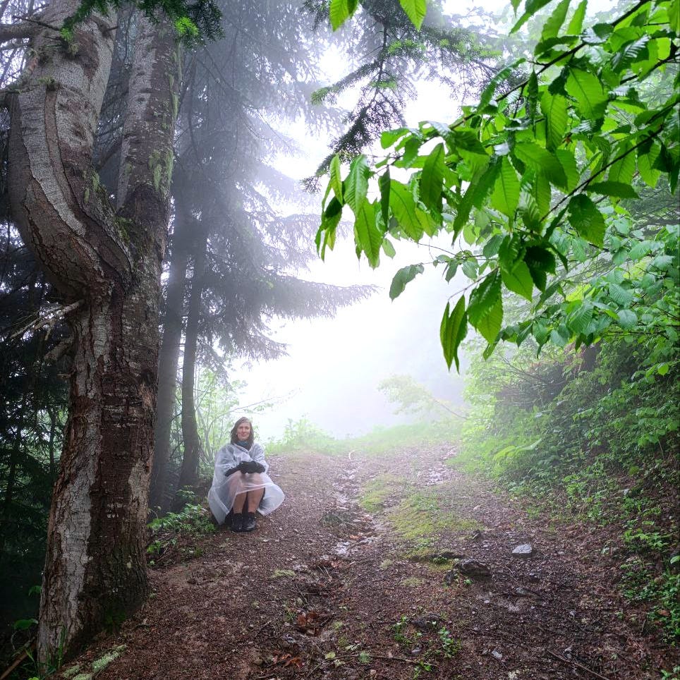 Vienā no pēdējām nometnes dienām devāmies uz kalnu ezeru. Pa ceļam gan lija, gan bira krusas graudi, un stāvās takas pārvērtās par dubļainiem avotiem, kas aizrāva sev līdzi visu lieko – pērnās lapas, nokritušos zarus, jebko, kas trāpījās ceļā.