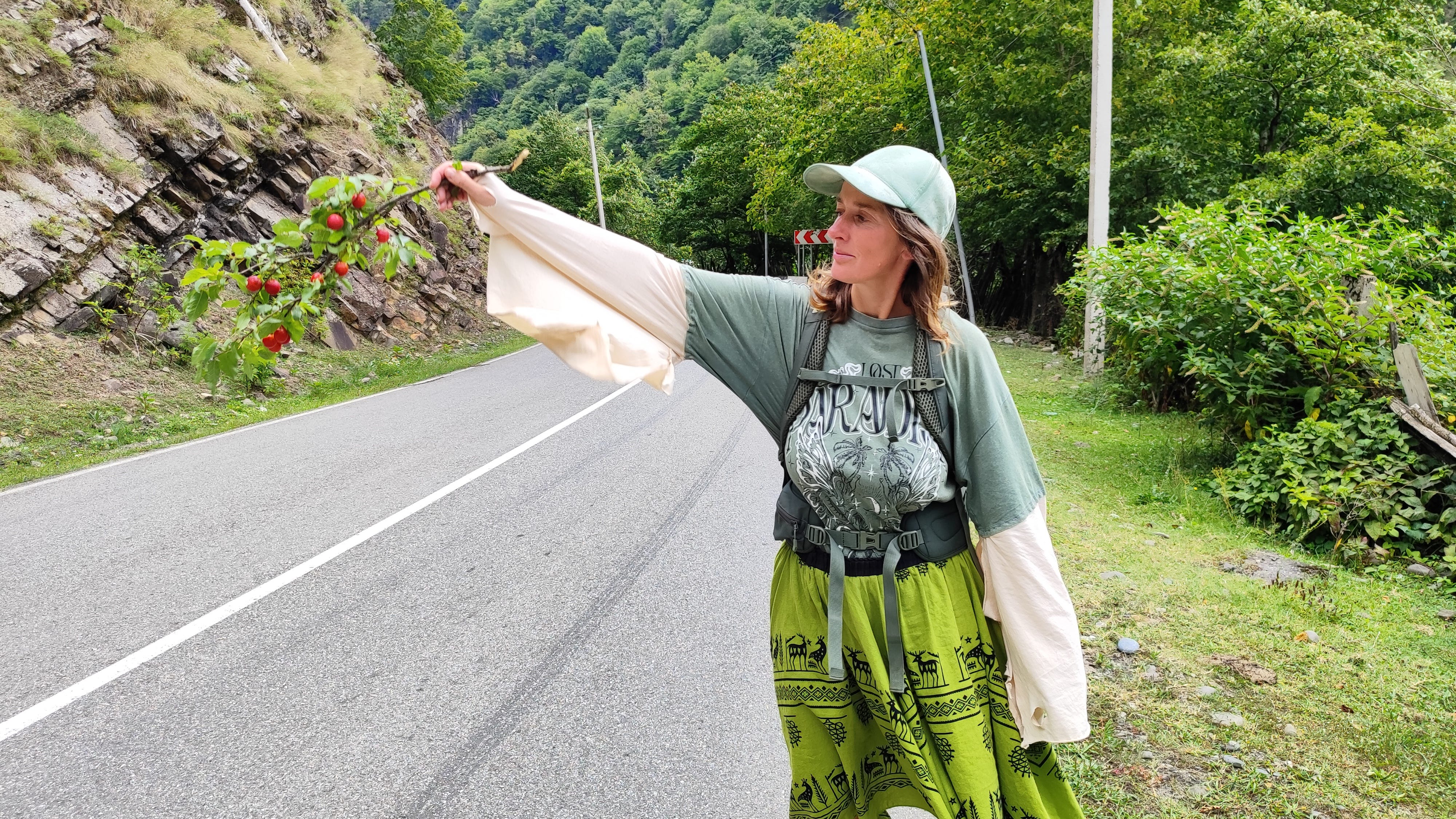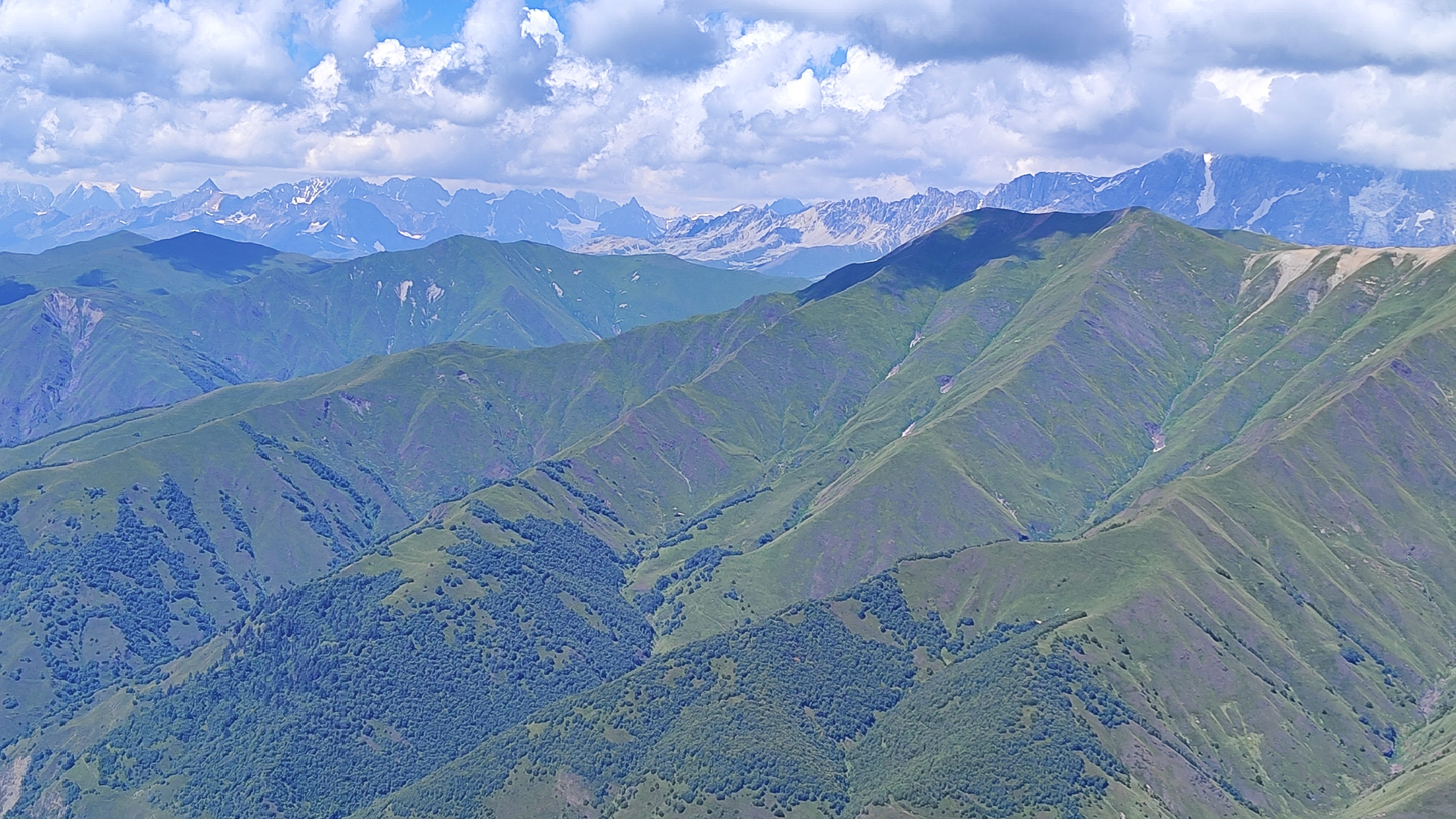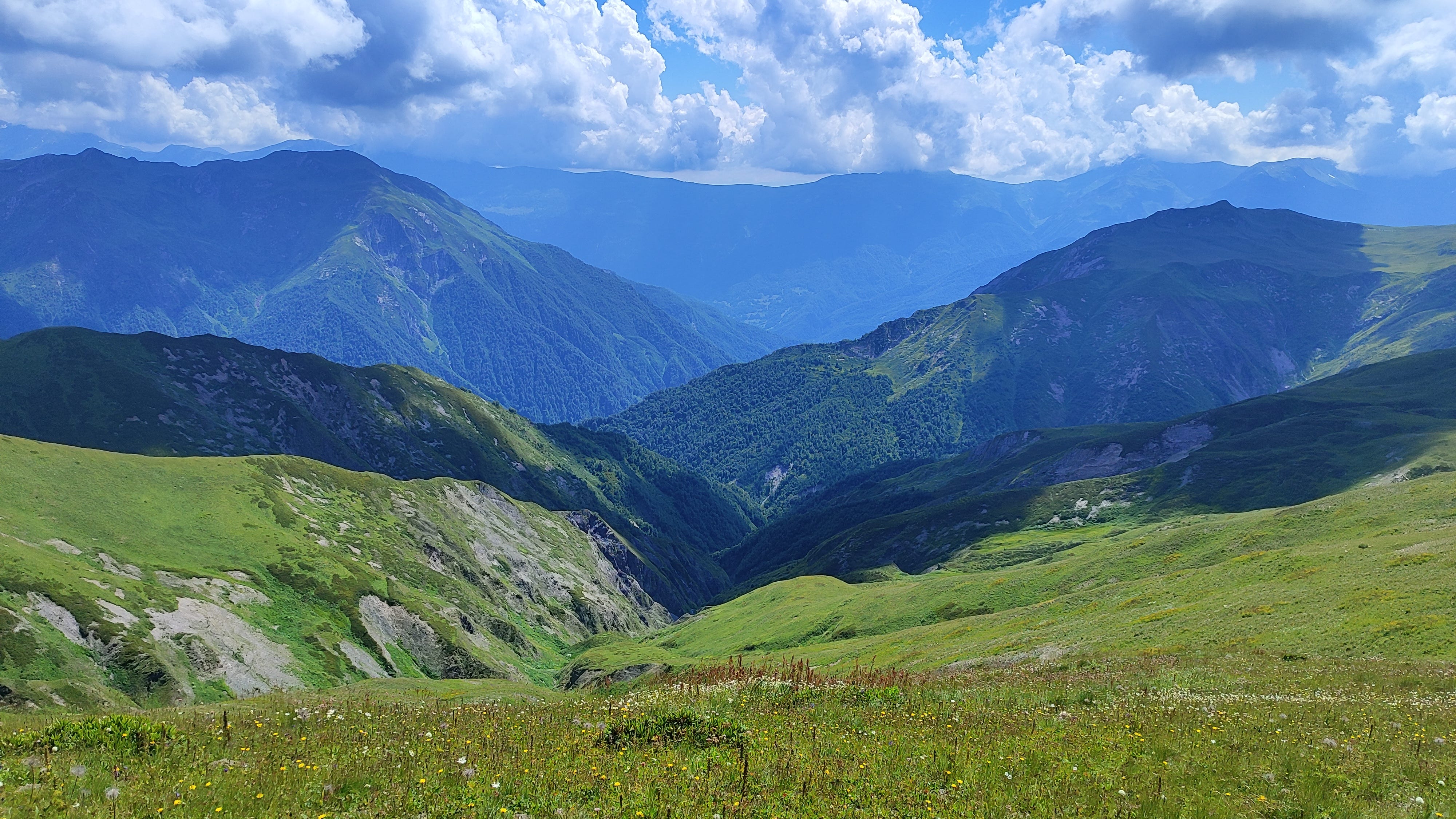 Pa ceļam mielojos ar dažām mellenēm, skābenēm un dažiem malciņiem avota ūdens. Neko citu mutē nelieku. Nesvīstu, bet karsti gan ir visu laiku, lai gan ar katru soli jūtos aizvien labāk, un drīz vien arī mēs pārliecināmies, ka solījums par visskaistāko ainavu Kaukāzā ir patiess.